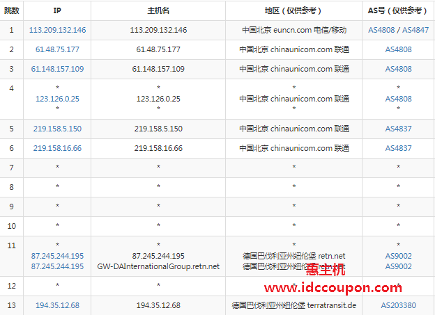 移动去程路由节点测试,移动CMI线路直连德国core-backbone网络到达机房: