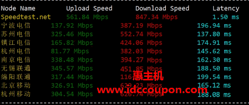 Speedtest测试国际部分节点上行和下行带宽速度: