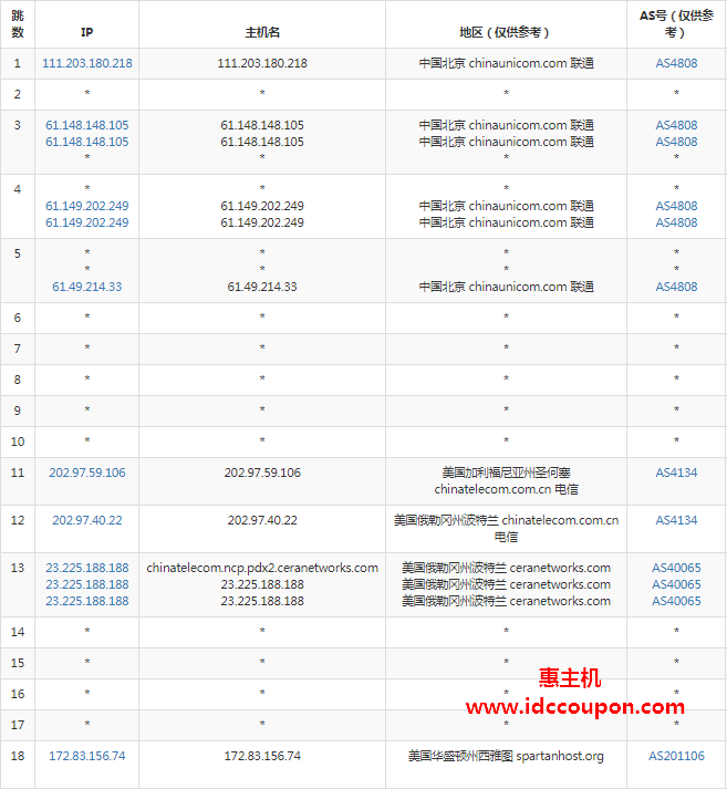联通去程路由节点测试,联通AS4834直连到达西雅图机房: